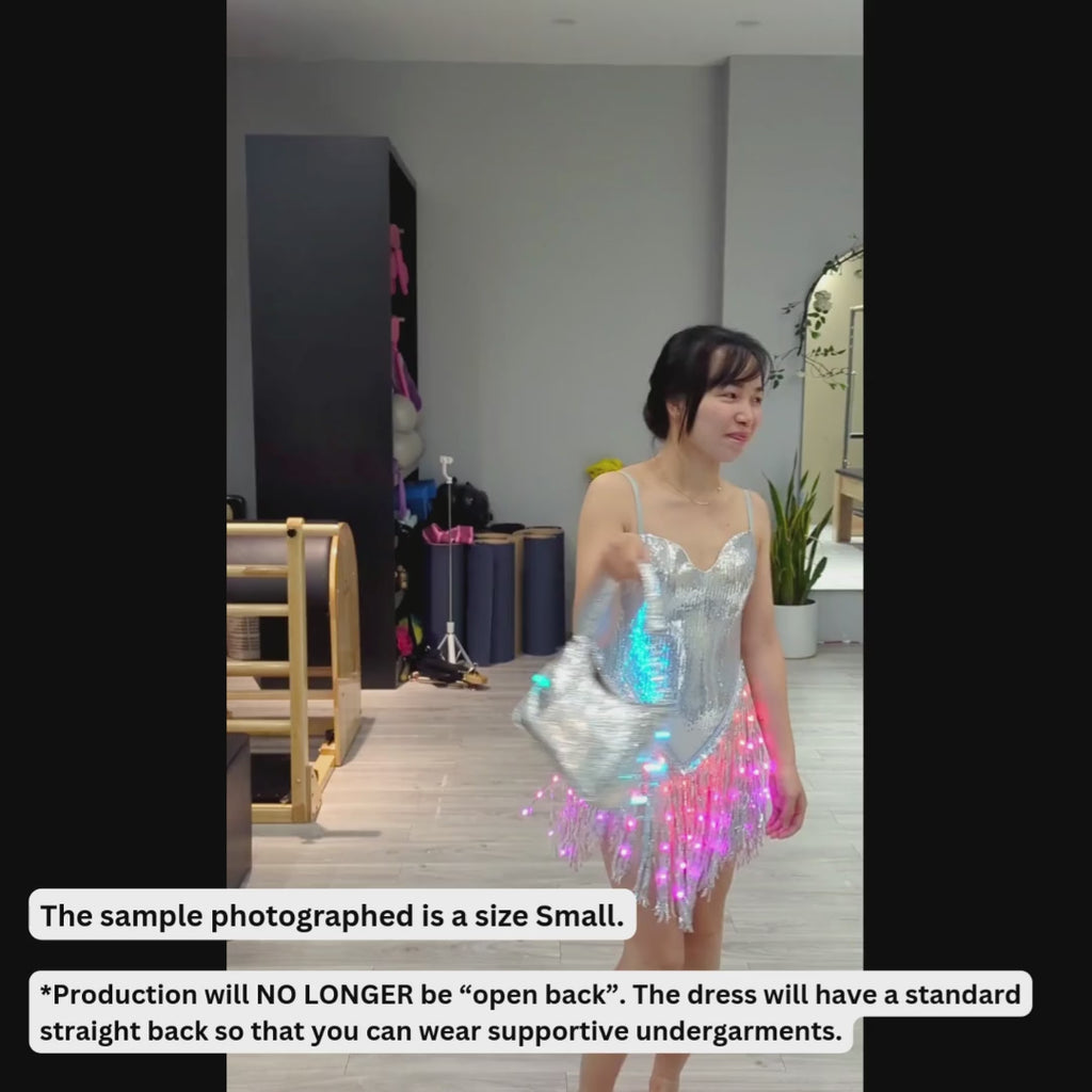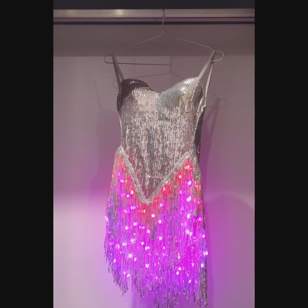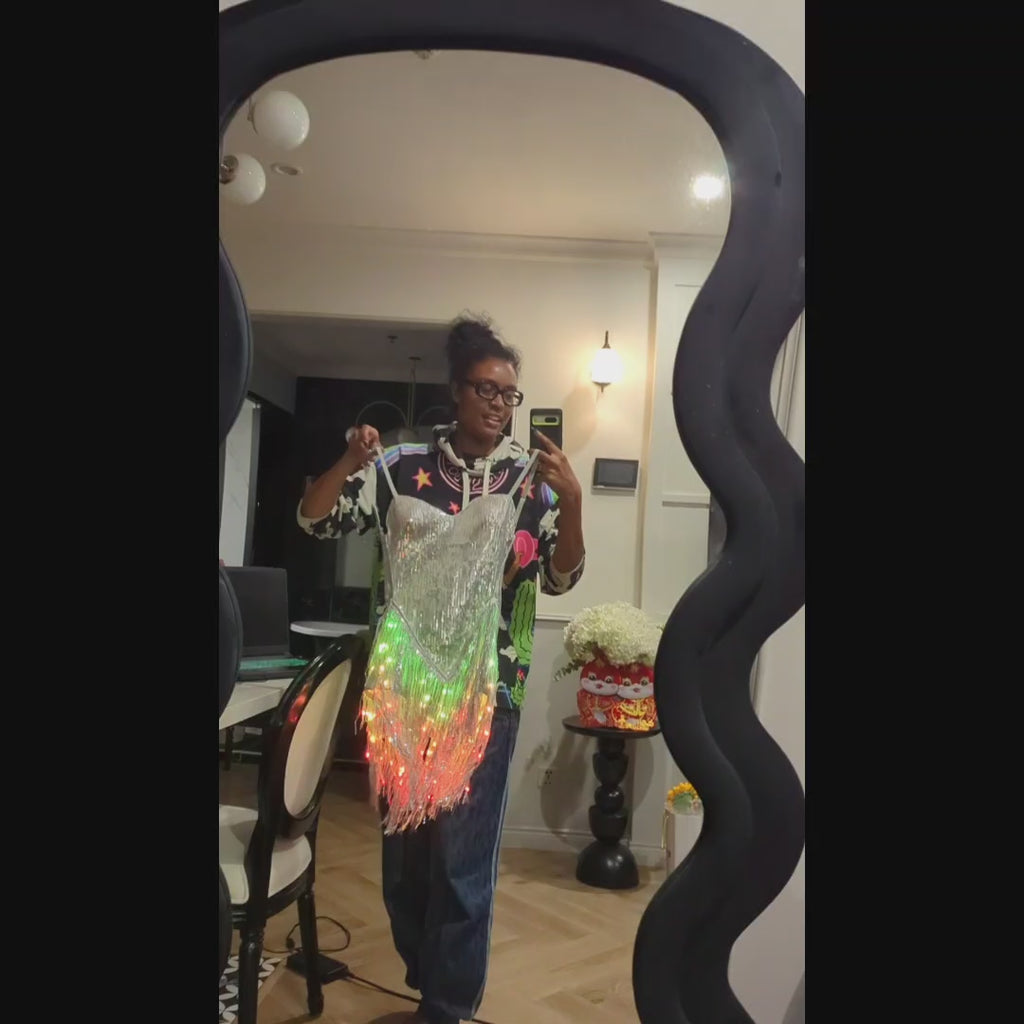 🎉 Complete the Look: Style this dress with our iconic LED Fringe Sequin Jacket for a layered glow effect, or pair it with statement footwear for a bold solo look.