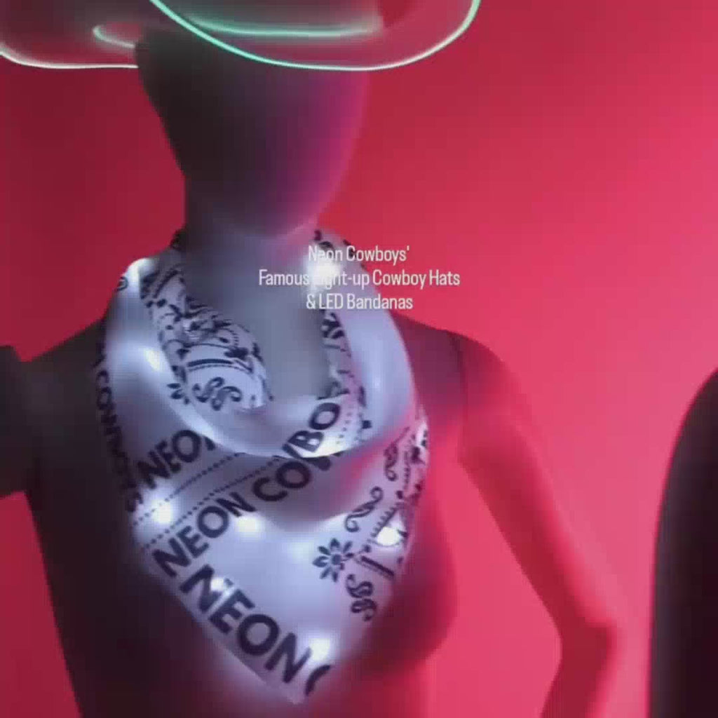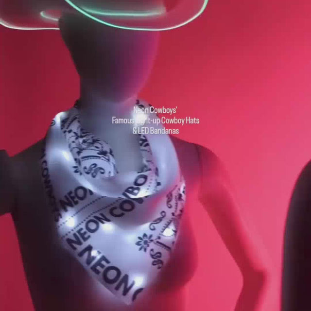 Light up the night with the Neon Cowboys® Light Up Bandana. Perfectly matches your hat, protects from dust, and glows with LED lights. Ideal for music festivals and unforgettable moments.