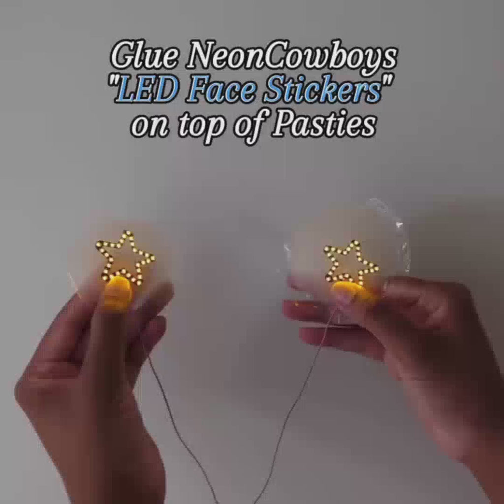 LED Pasties (Shapes ONLY) are designed to be attached to your existing pasties or clothing using fashion tape, fabric glue, or similar adhesives (not included). They are not designed for direct skin application without proper backing. Many customers add them to plain pasties, bralettes, bodysuits, or costumes to create unique illuminated looks tailored to their personal style. The included skin-safe adhesive and clips help with secure attachment while the battery pack can be discreetly positioned on your outfit. These versatile lights add instant glow to any festival look and can be paired with our Light Up Cyber Glasses for a head-to-toe illuminated ensemble with application methods, attachment techniques, pasty customization, light-up fashion DIY, and multiple creative accessories.